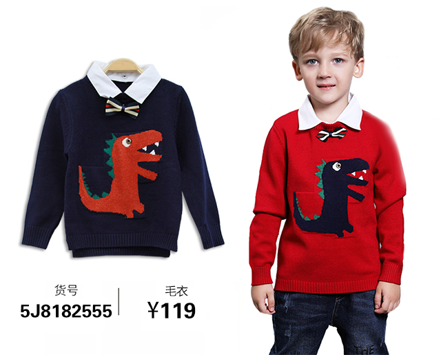 紅色卡通圖案毛衣內(nèi)搭白色襯衫